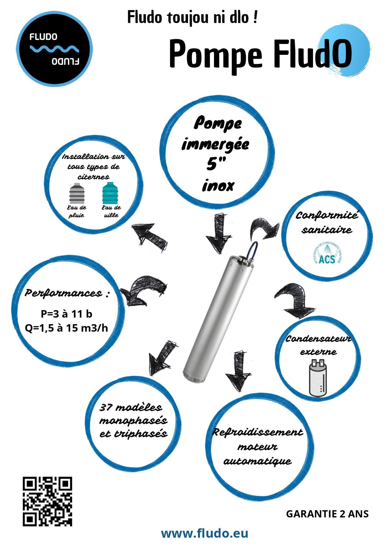 Les pompes FLO sont ACS et de conception multicellulaires immergées de 5″. Débits de 1.5 à 15 m3/h.