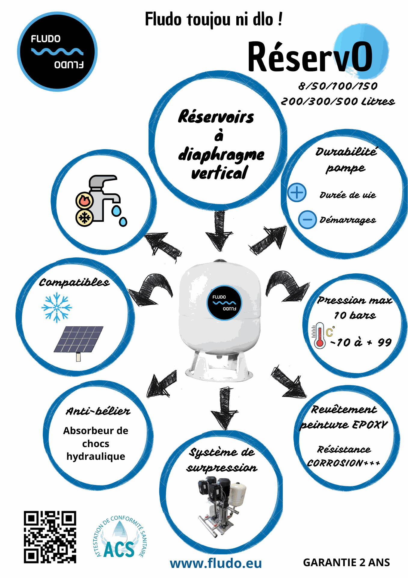 réservoirs sous pression dans les systèmes sanitaires à eau froide.